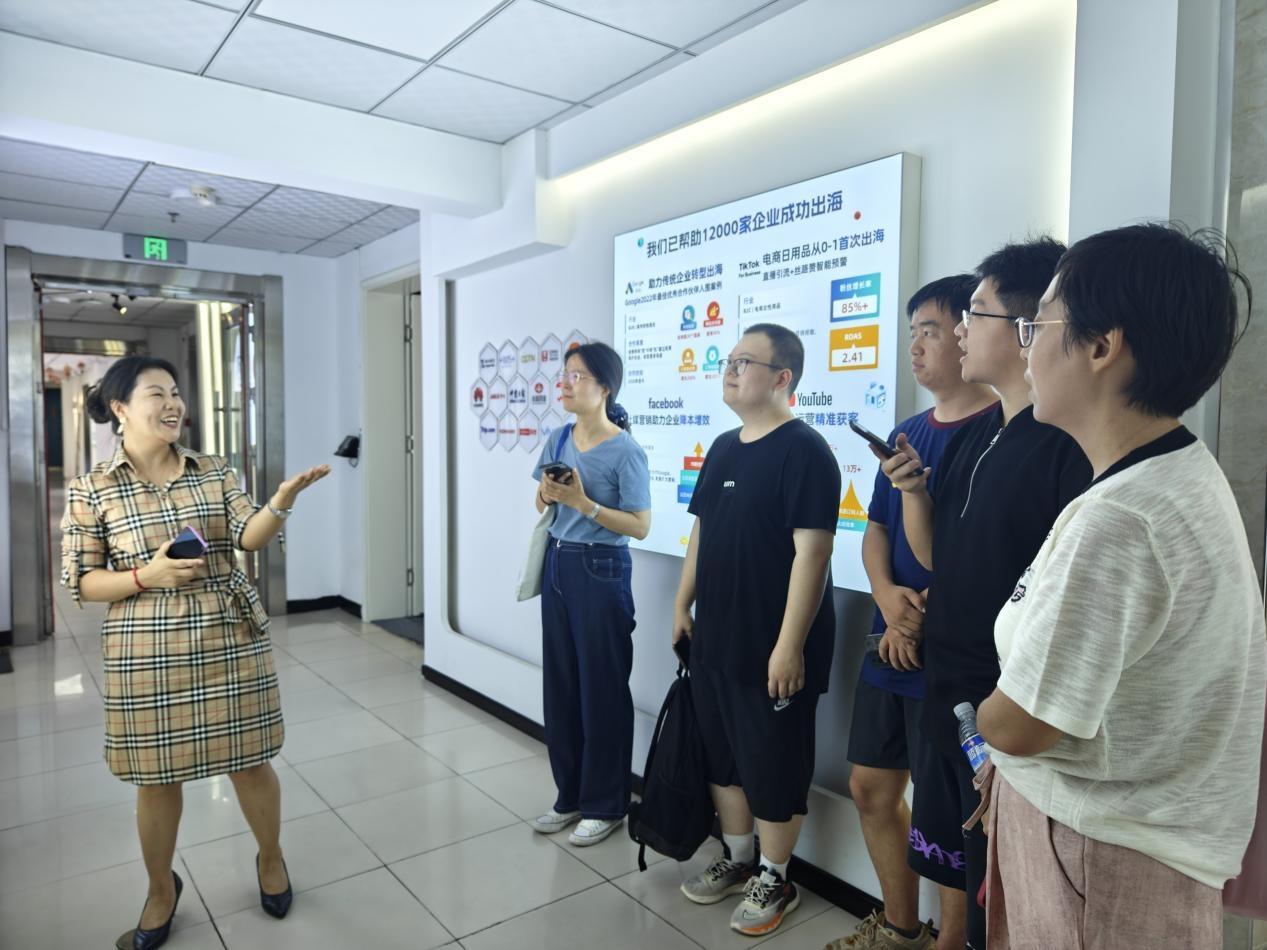 座谈会后,师生一行到园区众创空间和成功易信息技术有限公司参观学习,了解了企业在跨境电商和数字营销领域从资源对接、技术支持到市场推广的全链路流程以及多个成功案例。张明明主任表示,这些技术场景为外语专业学生提供了全新的实践机会,能够有效推进学生理论知识在行业实践中的应用。
