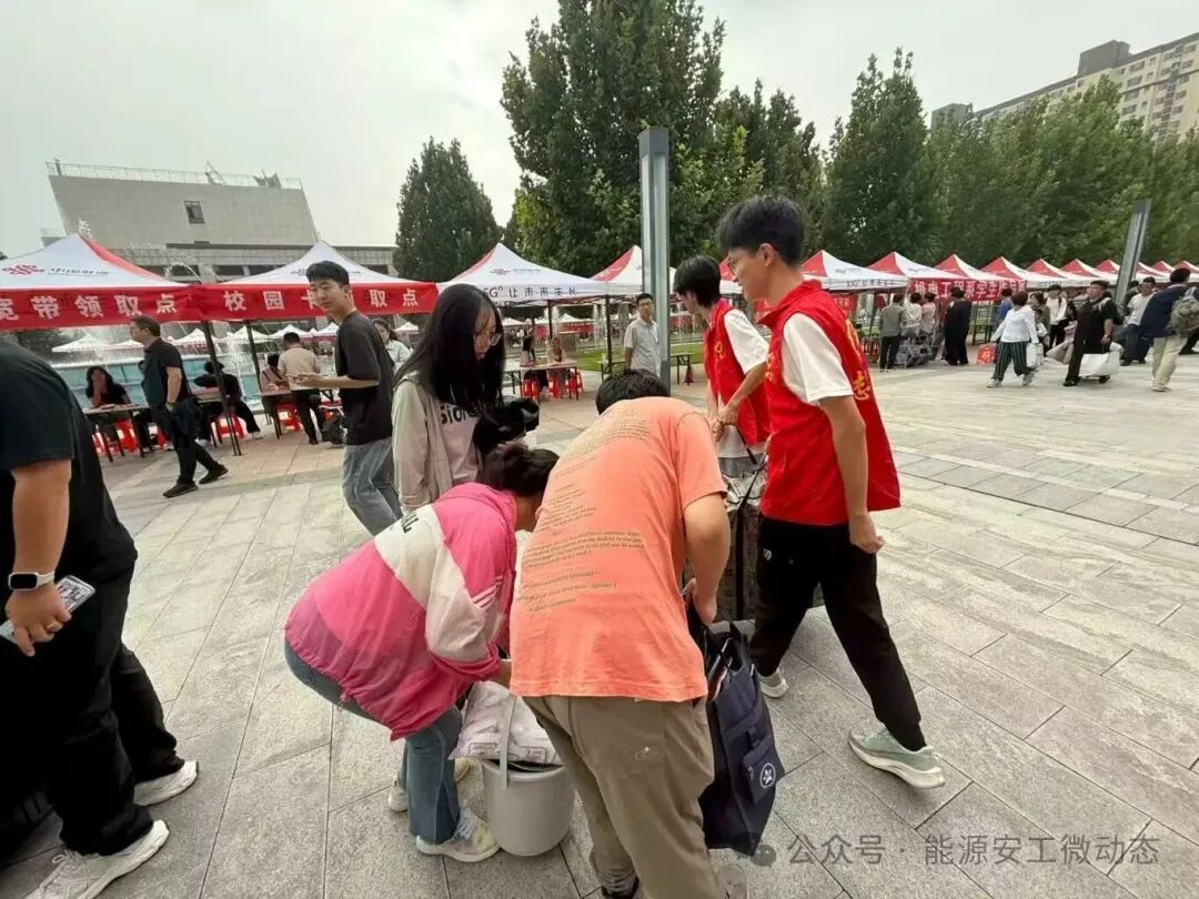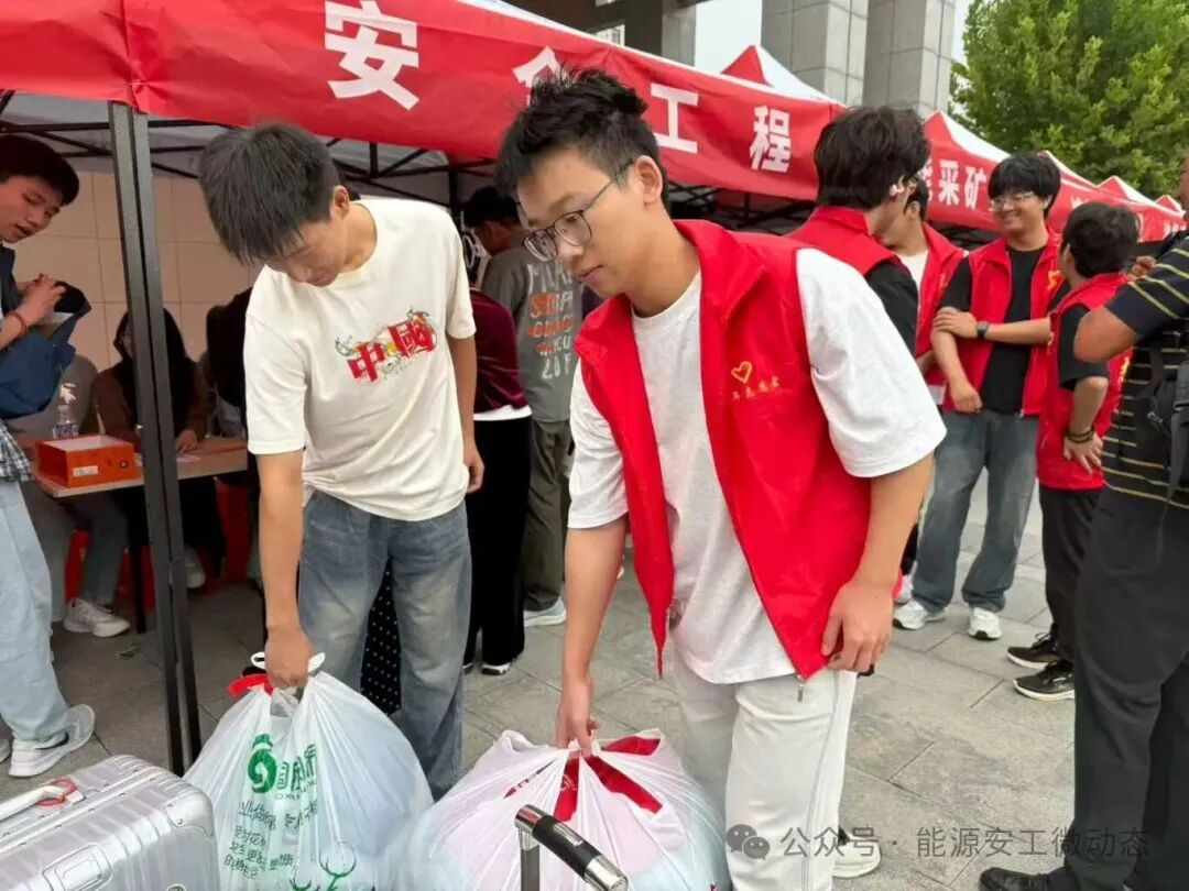 系学生会的成员和学长学姐早已提前就位,化身为“搬运行李小分队”。无论是沉甸甸的行李箱,还是装满生活用品的大包裹,他们二话不说接过来就扛;遇到新生询问报到流程、宿舍位置,也耐心细致地一一解答,汗水打湿了衣衫,笑容却始终挂在脸上。“别担心,跟着我走!”简单的一句话,藏着安工系最真诚的守护。
