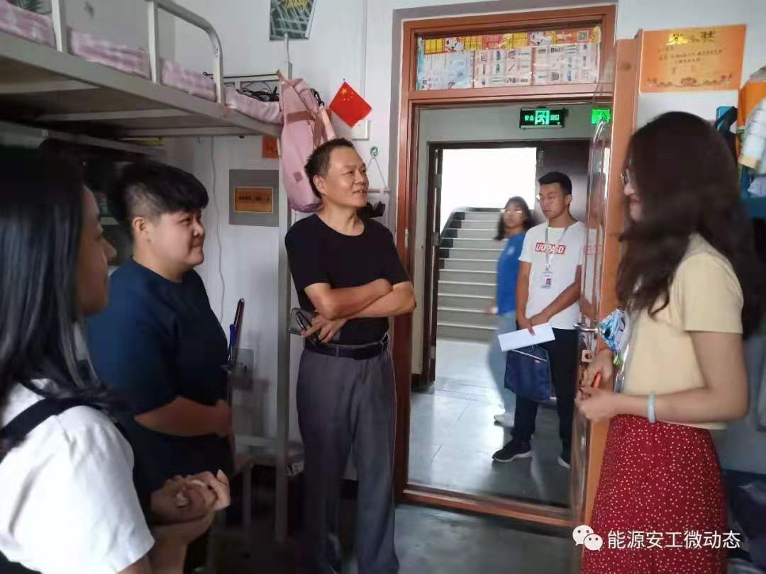 新学期伊始,同学们已陆陆续续返回学校。为了做好开学初的准备工作,进一步加强学生宿舍卫生管理,同时督促学生保持良好的公寓卫生环境,以全新的面貌迎接新的学期。9月1日下午,安全工程系郭辉书记在学生干部们的陪同下进行了走访安全工程系学生宿舍的工作,并与同学们进行了亲密的交谈。