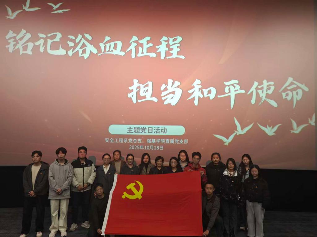为深入学习贯彻党的二十大精神,纪念中国人民抗日战争暨世界反法西斯战争胜利80周年,缅怀革命先烈,传承红色基因,激励广大党员不忘初心、牢记使命,安全工程系党总支和强基学院直属党支部于2025年10月28日下午组织开展了“铭记浴血征程,担当和平使命”主题党日活动,全体党员集体观看了红色影片《志愿军:浴血和平》。