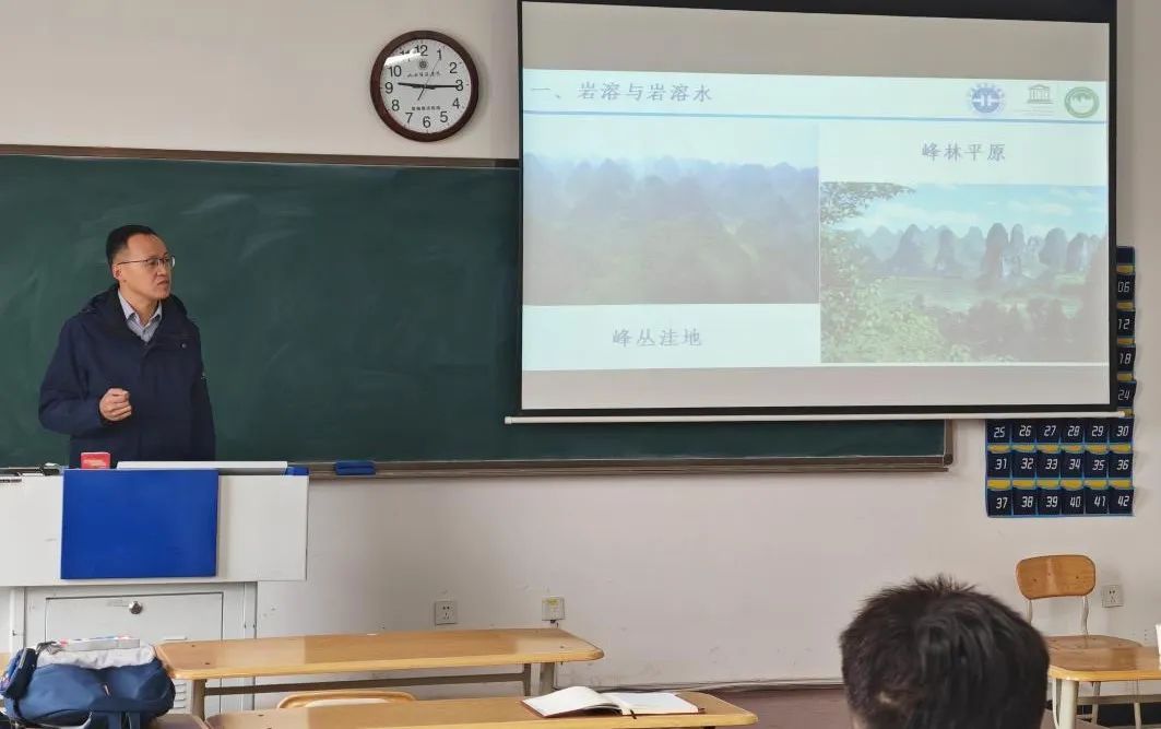 讲座中,申主任介绍了我国北方岩溶水概况、岩溶水系统特征和岩溶水开发利用过程中产生的生态环境问题。并以娘子关泉域为例,揭示了岩溶水循环过程及泉水来源成因,从而实现地下水循环过程监测。整场讲座中,同学们全神贯注、认真聆听。