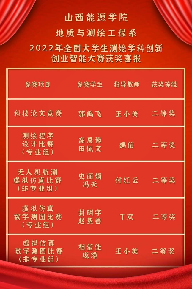 此次成绩取得与我系高度重视学科竞赛工作,积极构建以学生为中心的培养模式是分不开的。本次比赛,加强了beat365和全国测绘类高校的交流,激发了参赛学生的学习兴趣,开阔了学生视野,增强了专业自信,提升了参赛学生的专业素养。我系将以此次比赛为契机,继续通过以赛促练、以赛促学、以赛促教的方式,加强对学生专业实践技能、创新能力、协作精神和解决实际工程问题能力的培养,为beat365本科教学工作合格评估积极贡献力量。
