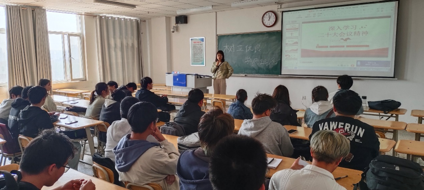 团支书康栋甲带领同学们一起学习了党的二十大精神,重温了党的二十大报告金句。在学习过程中,每位同学认真聆听,深入思考,也更加坚定了永远听党话,跟党走的信念。