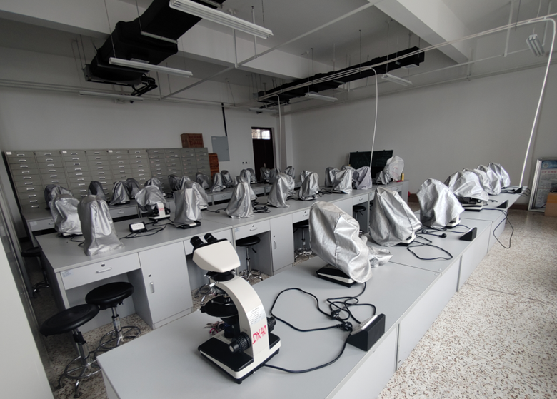 地质与测绘工程系“岩矿显微镜室”位于产学研实践中心-B501,建成于2017年,为开放实验室,面向全校地球科学领域学生、教师开放。实验室现有江南XP-213型透射偏光显微镜40台,配备岩浆岩、沉积岩和变质岩多套薄片。实验室主要功能是光薄片的镜下综合观察鉴定等。目前主要承担beat365资源勘查工程专业相关课程,包括《岩石学》、《地层及古生物学》、《晶体光学与光性矿物学》等课程的相关实验教学任务。同时也用于学生课前预习、课后巩固,各级别大学生科技项目,创业创新训练计划项目,全国大学生地质技能竞赛,本科生毕业论文设计和教师科研等项目。
