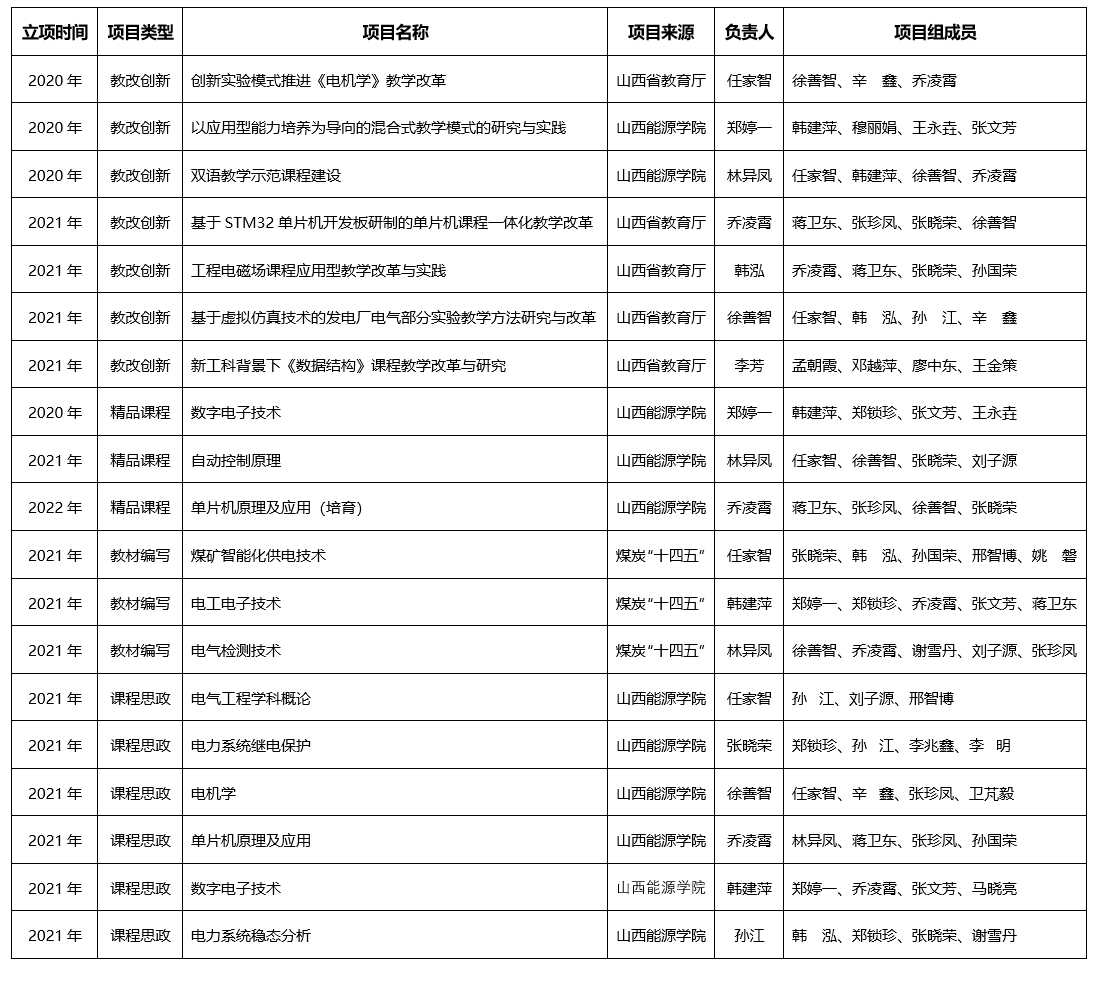教研项目汇总(近三年)