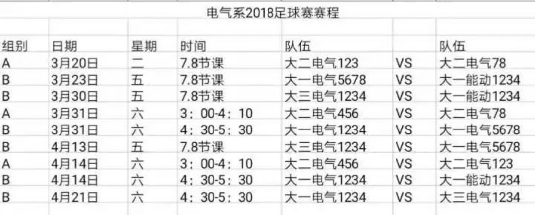 以下为本次足球赛赛程: