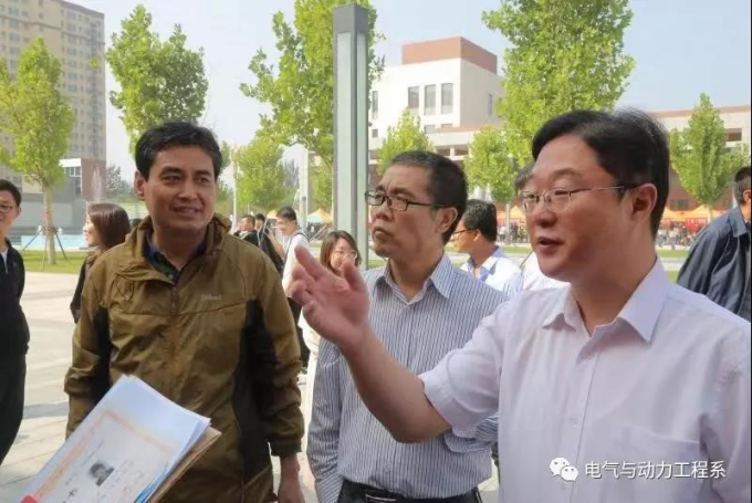 我院院长常建忠、电气系书记刘超群问候新生,并给新生简单介绍学院发展,给新生们留下深刻的印象,学院领导与电气系书记对电气系学生进行指导,亲切地为新生答疑关切地询问新生的报道情况并对迎新工作者们表示了关心和问候。