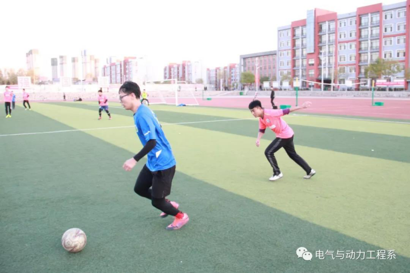 绿茵中身着蓝色球衣的教工队激情澎湃,让大家看到了课堂外老师们的独特魅力。身着粉色球衣的学生队意气风发,展现出电气学子的拼搏精神。场下观众席上,学院师生为场上队员们呐喊助威!