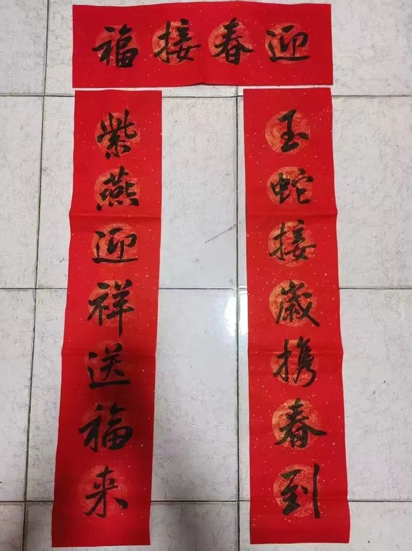 一幅幅充满新春祝福的春联,写的是汉字,报的是节讯,暖的是人心。黑墨红纸间感受笔墨丹青的独特魅力,浸润优秀文化,续写美好祝愿。 “蛇舞春风迎晓日,龙腾喜气送寒冬”,愿电气系的学子们带着这份美好的祝福,于墨香中继续探寻文化的魅力,用文字书写更多的美好,新的一年,共赴新程!