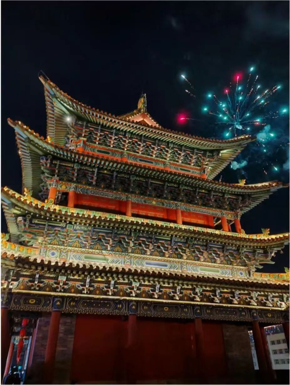 这是拍摄于太原拱极门的照片,拍摄时是正月十五,拱极门位处明太原城东北隅,是明太原府城八门中从未更名的城门之一。烟花的光芒映照在城门的墙面上,原本古朴的城墙瞬间变得五彩斑斓,光影交错间,古老与现代在这里完美交融。