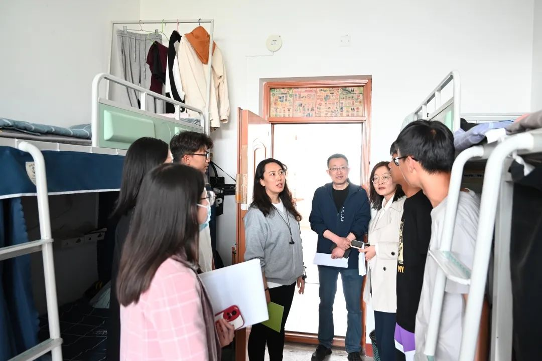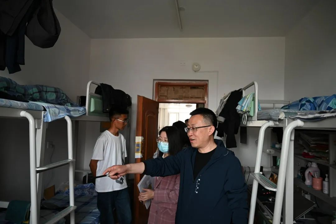 为切实做好学生宿舍的卫生安全工作,增强同学们对安全隐患问题的重视,督促同学们改善宿舍卫生,培养学生自我约束、自我管理的生活习惯,营造一个良好的生活氛围。4月19日学生工作部学生管理科科长朱玮,我系党总支副书记李芳以及辅导员闫光美老师、王小清老师,张珍凤老师深入学生宿舍走访看望了我系学生。