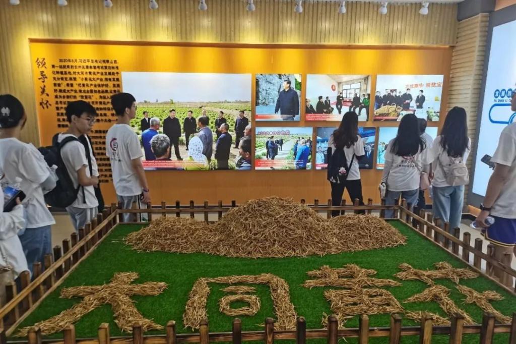 8月8日,实践队员在大同花倾城田间农业发展有限公司负责人杨旗的带领下参观了大同花倾城黄花菜博物馆。在博物馆中,实践队员紧跟负责人的脚步,零距离地观摩整个黄花菜发展历史以及各种黄花菜产品。习近平总书记参观走访时曾说道,“你们这里是黄花菜大产业,这个产业还真是有发展前途。一定要保护好、发展好这个产业,让它作为人民群众致富的好门路”。相信大家一定会牢记习近平总书记嘱托,继续把黄化产业做大做强。