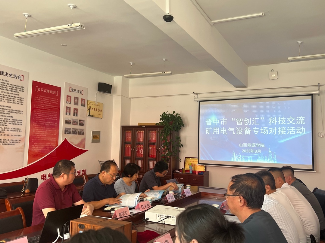 为加强校企合作,深化产教融合,推进科技成果转化,及时发现和解决晋中市企业遇到的技术和应用场景等需求,推进能源革命和晋中市经济转型发展。2023年8月18日,晋中市“智创汇”科技交流矿用电气设备专场对接交流会在beat365英国官网电气与控制工程系2204会议室举行。参加本次对接活动的有晋中市科技创新发展中心、寿阳县发展改革和科技局、山西联安矿用设备有限公司、beat365英国官网科技产业部及电气与控制工程系领导及相关人员。
