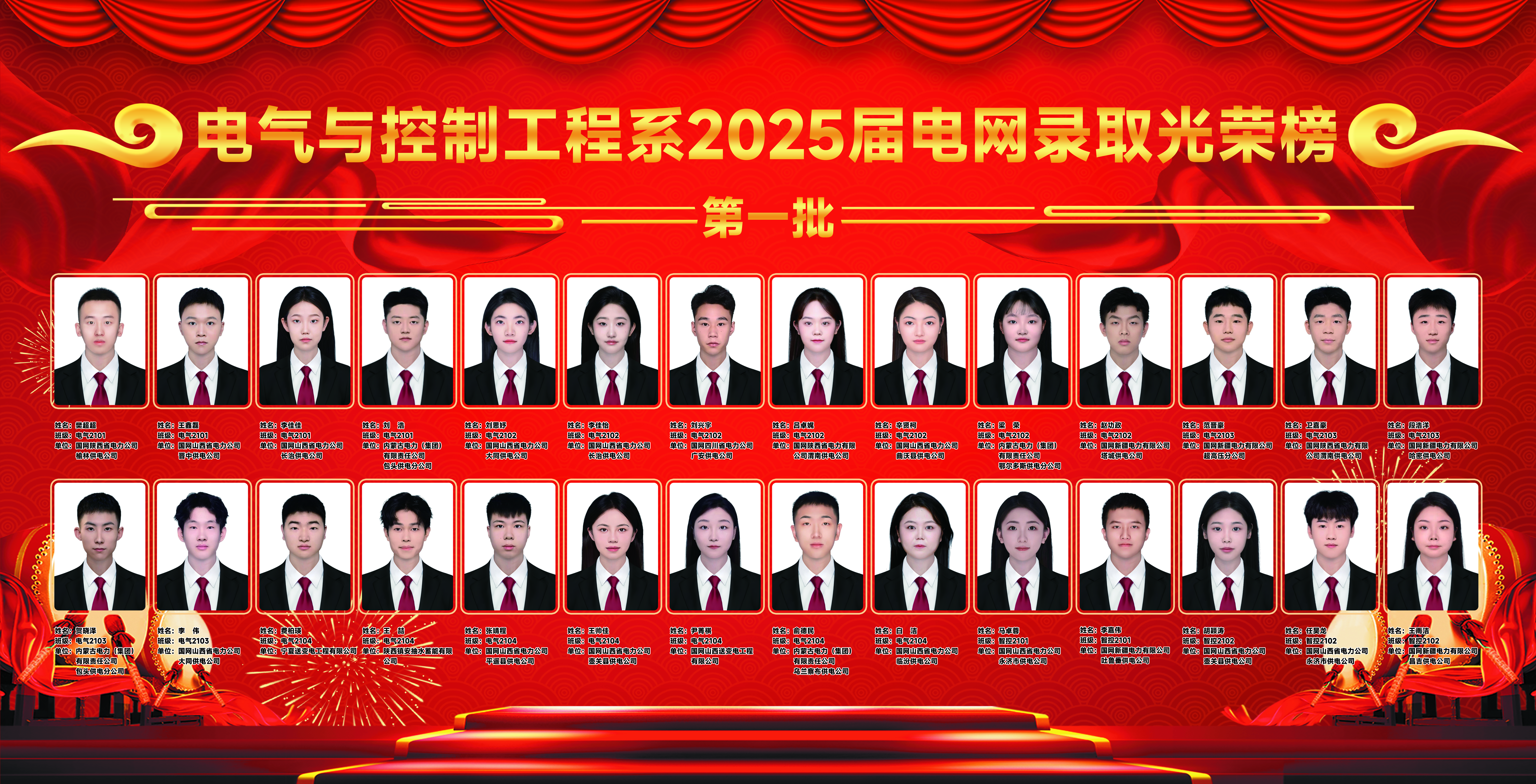 电气与控制工程系2025届电网录取光荣榜第一批