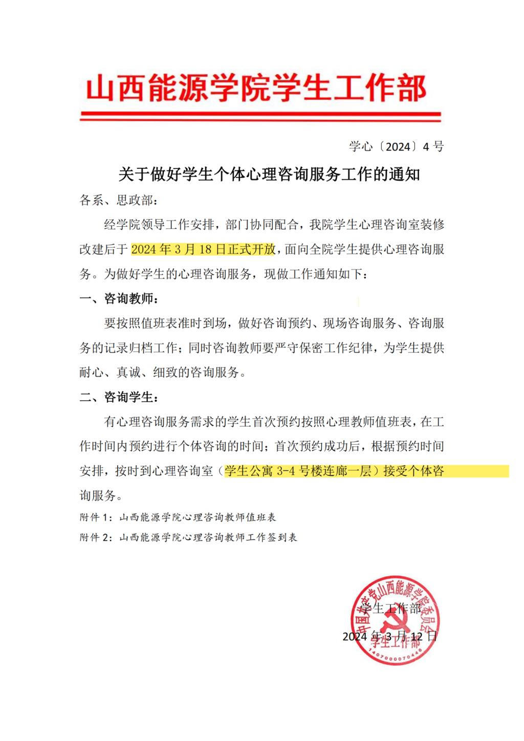 关于做好学生个体心理咨询服务工作的通知