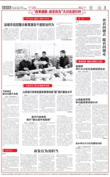 2019年4月6日《山西日报》“改革创新、奋发有为”大讨论进行时专栏报道我院争当能源革命排头兵。