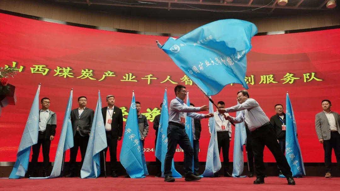 “千人智库”主席冯国瑞教授宣布山西煤炭产业千人智库微信小程序正式上线并授志愿服务团队队旗。在随后的讲话中,他围绕“智创山西”介绍了智库为煤炭企业科技赋能助力生产的重大进展及积极意义。