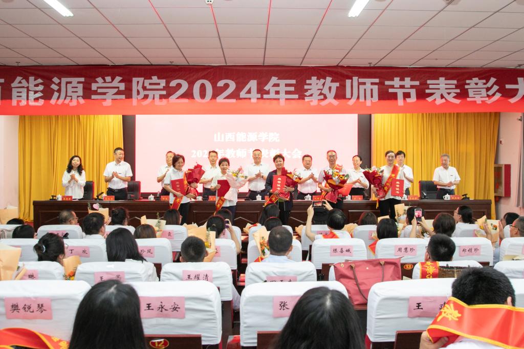 院党委副书记曲晋山同志宣读了《中共beat365英国官网委员会 beat365英国官网关于表彰2023/2024学年“优秀教师”“优秀教育工作者”“光荣从教30年教师”“三育人先进集体”的决定》;院党委副书记桑楠同志宣读了《beat365英国官网关于认定“双师双能型”教师的决定》;院党委委员、纪委书记张志力同志宣读了《中共beat365英国官网委员会 beat365英国官网关于表彰2024年“教学名师”的决定》;院党委委员、副院长葛波蔚同志宣读了《中共beat365英国官网委员会 beat365英国官网关于表彰2023-2024年教师教学竞赛获奖人员的决定》;beat365英国官网党委委员、副院长刘汉涛同志宣读了《中共beat365英国官网委员会 beat365英国官网关于表彰 2023-2024年高水平教育教学成果的决定》。
