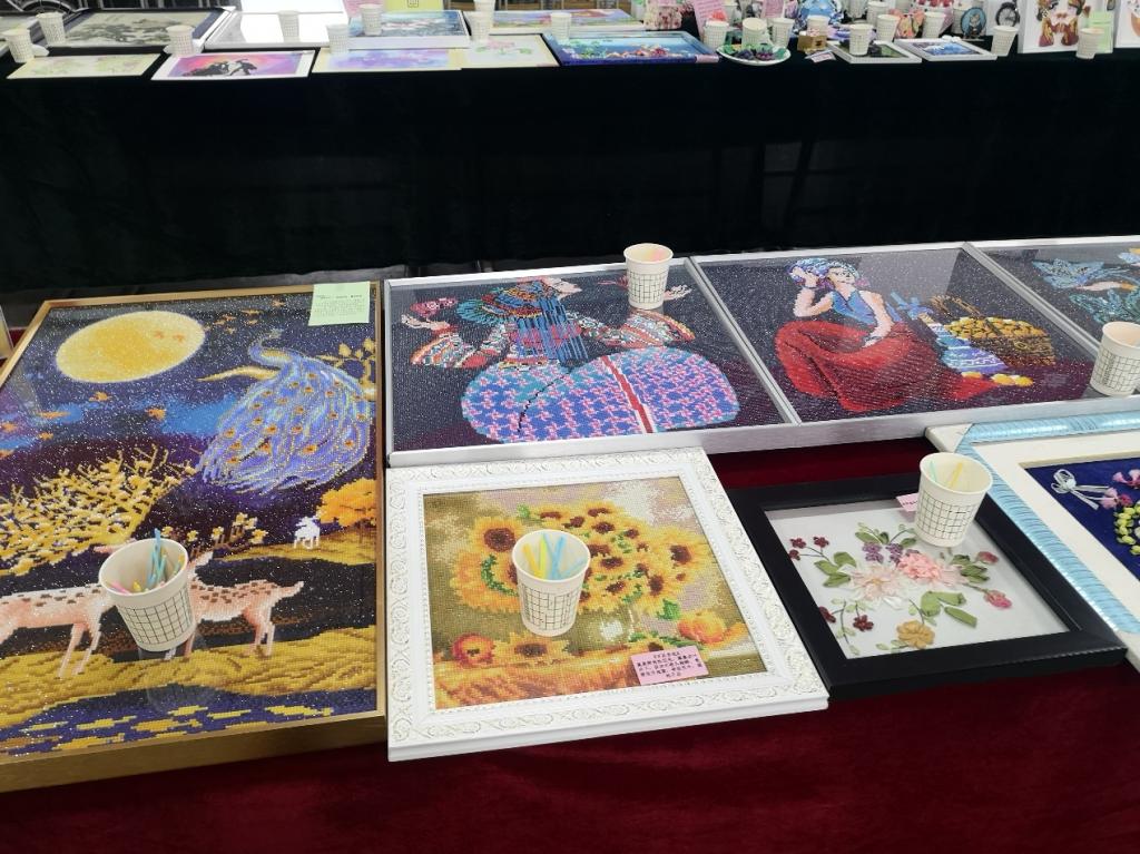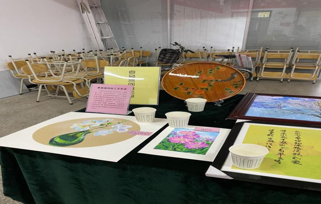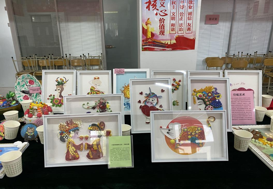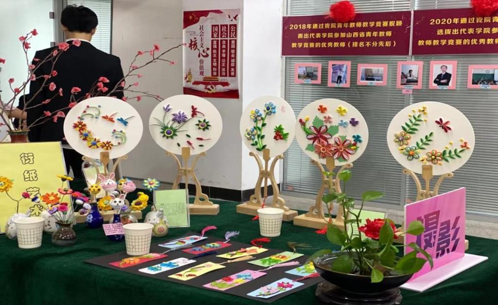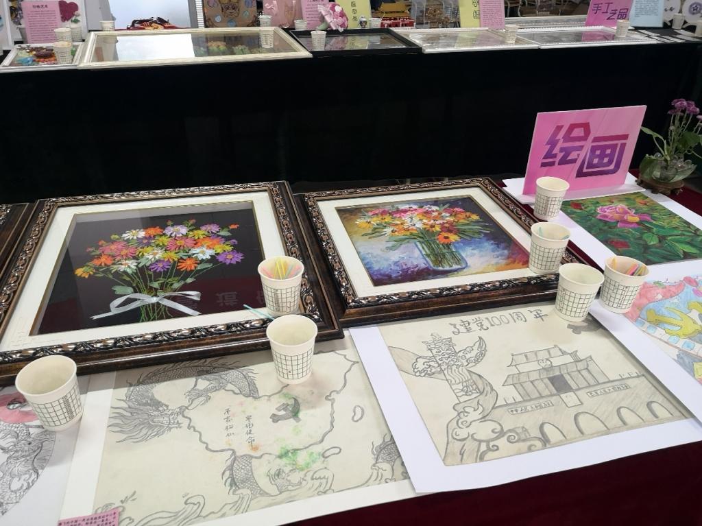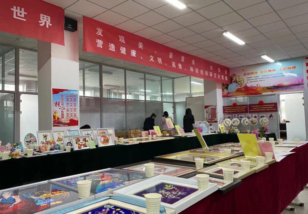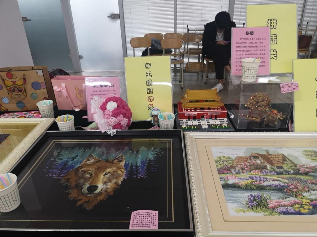 手工艺作品展区展示了丝带绣、钻石画、十字绣、衍纸艺术、景泰蓝掐丝工艺、手工编织、黏土工艺、拼插及其他等九类作品。展台对每类作品的取材、制作以及给生活带来的美好体验都有详尽说明。通过参观欣赏,培养教职工的生活情趣,让大家善于在平凡的生活中长一双慧眼,发现美、鉴赏美、创造美,不断营造我院健康、文明、高雅、和谐的校园文化氛围。我们的口号是:动手做一做,你就拥有了美丽世界!