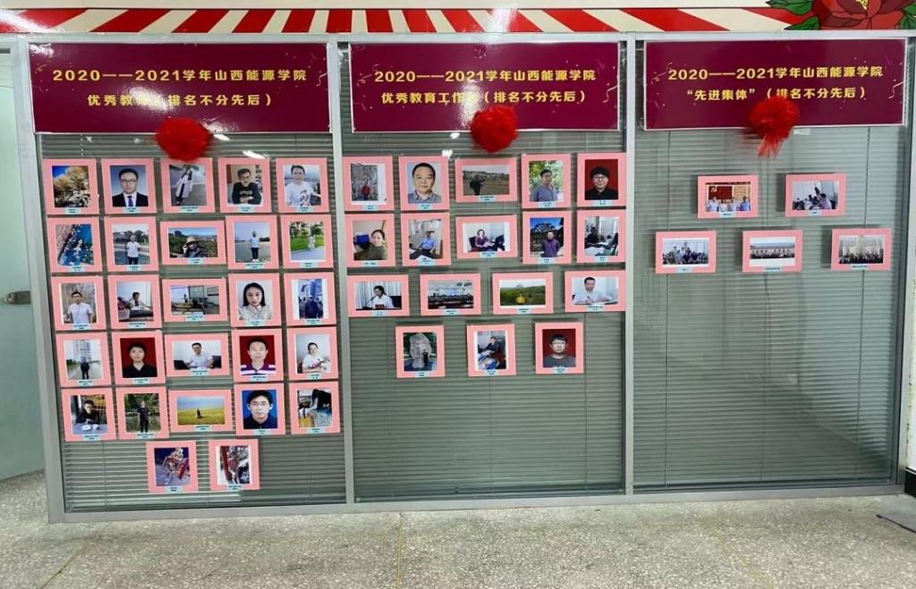 学院优秀代表展区分为五个部分:2018年通过我院青年教师教学竞赛脱颖而出,代表学院参加山西省青年教师教学竞赛的优秀教师;2020年通过我院青年教师教学竞赛选拔出代表学院参加山西省青年教师教学竞赛的优秀教师;2020——2021学年beat365英国官网优秀教师;2020——2021学年beat365英国官网优秀教育工作者;2020——2021学年beat365英国官网“先进集体”。习近平总书记指出:劳模精神、劳动精神、工匠精神是以爱国主义为核心的民族精神和以改革创新为核心的时代精神的生动体现,是鼓舞全党全国各族人民风雨无阻、勇敢前进的强大精神动力。通过对我院优秀代表和先进集体的展示活动,弘扬正能量,引导全院教职工学习爱岗敬业、争创一流、艰苦奋斗、勇于创新、淡泊名利、甘于奉献的劳模精神,学习崇尚劳动、热爱劳动、辛勤劳动、诚实劳动的劳动精神,学习执着专注、精益求精、一丝不苟、追求卓越的工匠精神。