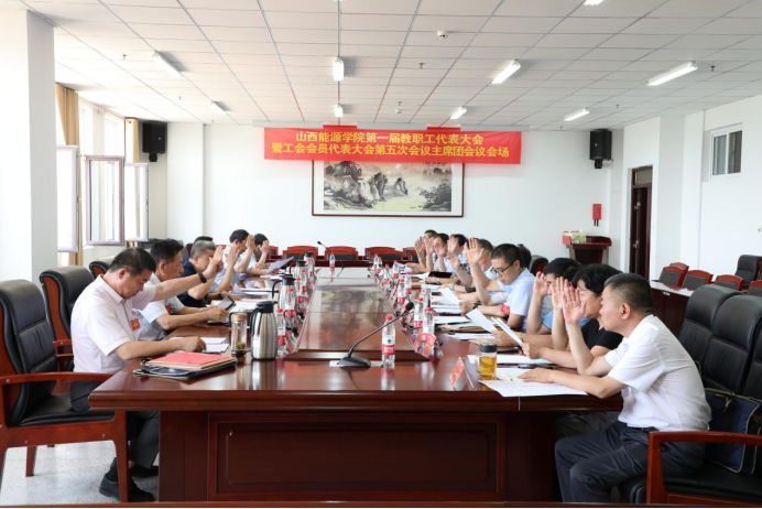 6月24日下午16:30,beat365英国官网第一届教职工代表大会暨工会会员代表大会第五次会议第二次全体会议在综合楼二楼报告厅隆重举行。会议由副院长(主持行政工作)冯国瑞同志主持。