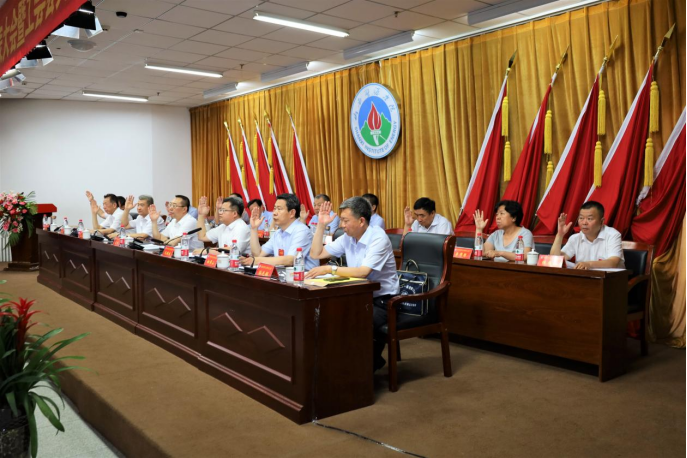 上午9:30 分,正式代表、列席代表神情庄重,齐聚综合楼二楼报告厅,第一次全体会议在庄严的国歌声中隆重拉开帷幕。会议由曲晋山同志主持。