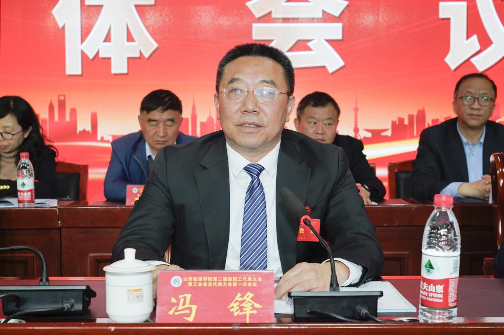 冯书记在讲话中指出,这次大会是在深入开展学习贯彻习近平新时代中国特色社会主义思想主题教育、贯彻落实学院第二次党代会精神推进我院特色鲜明应用型本科院校高质量发展的关键时期召开的一次重要会议。大会选举产生了学院第二届工会委员会委员、工会经费审查委员会委员和工会女职工委员会委员,审议通过了《院长工作报告》、《工会工作报告》、《财务工作报告》、《提案工作报告》、《工会经费审查报告》。在分团讨论中,各位代表紧紧围绕五个工作报告,从高质量加强党的建设、应用型人才培养、学科专业建设、师资队伍建设、教育教学改革、产教融合发展等不同角度,积极建言献策,提出了很多非常好的提案、意见和建议,充分展现了代表们的主人翁精神,体现了各位代表对学院事业发展的高度责任感和使命担当。冯锋书记强调:今年是全面贯彻落实党的二十大精神的开局之年,省委指出要全面对标党的二十大战略部署,更加注重发挥科技、教育、人才的战略性作用,实施碳达峰山西行动,研究推出一批重大政策举措,推进我省转型实现新突破。