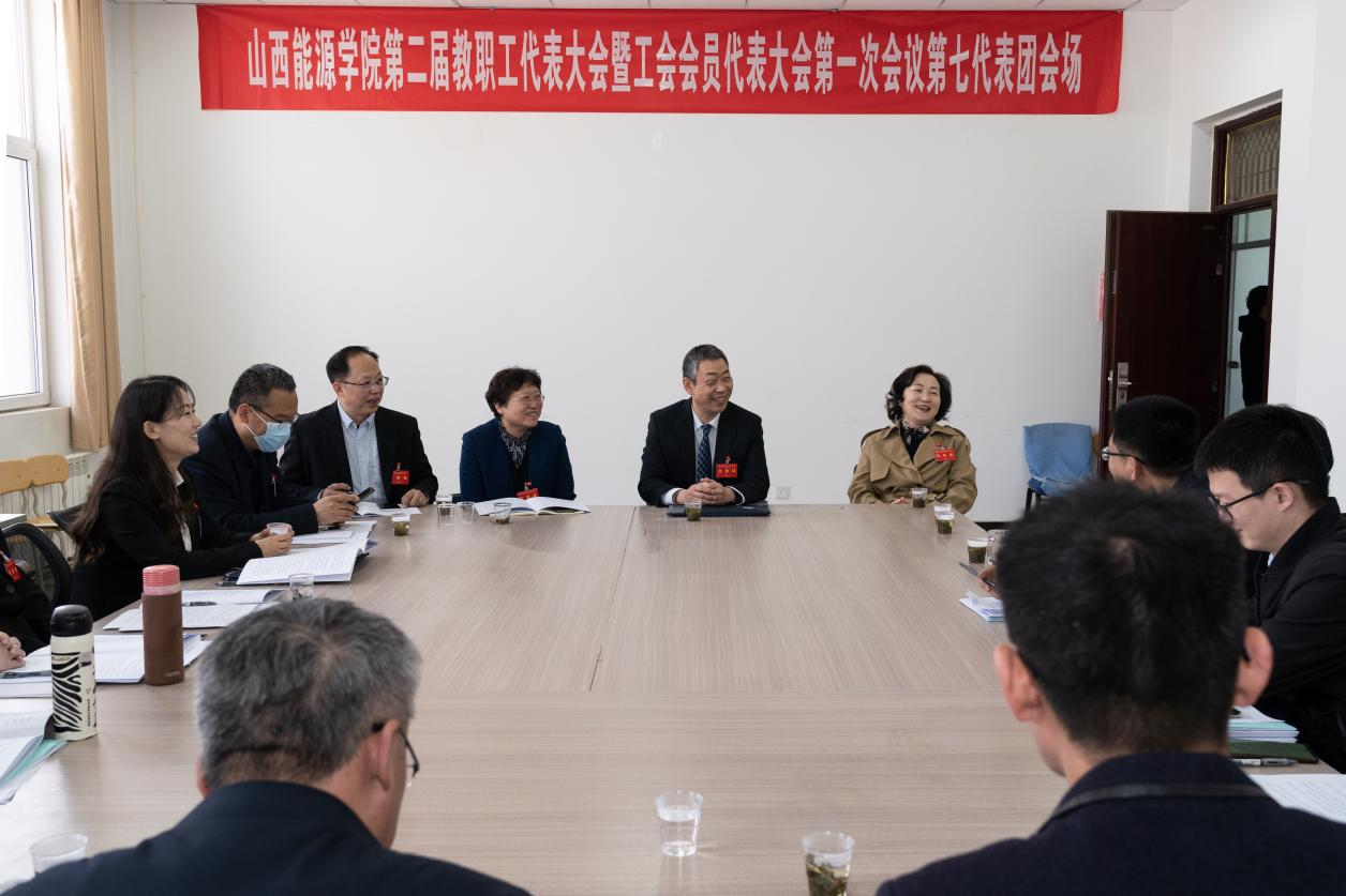 院党委书记冯锋、院党委副书记、副院长(主持行政工作)冯国瑞还深入到各分团会场,听取并参加了代表团分团讨论。他们与大家亲切交谈,强调大家肩负重任,要珍惜机会,当好代表,多给学院提好的意见建议,也要把会议精神传达给教职工。讨论现场气氛热烈,交流气氛轻松融洽。大家一致认为,《院长工作报告》等大会提交报告都贯穿了新发展理念,突出了新时代新主题,思路清晰、目标明确、措施得力,这次会议是一次鼓舞人心、凝聚人心的盛会。冯书记要求各位代表,要认真学习好、传达好、贯彻好、落实好会议精神,围绕会议精神,以问题为导向,做好制度建设、采取过硬举措,不断以制度推进工作,确保学院高质量发展。
