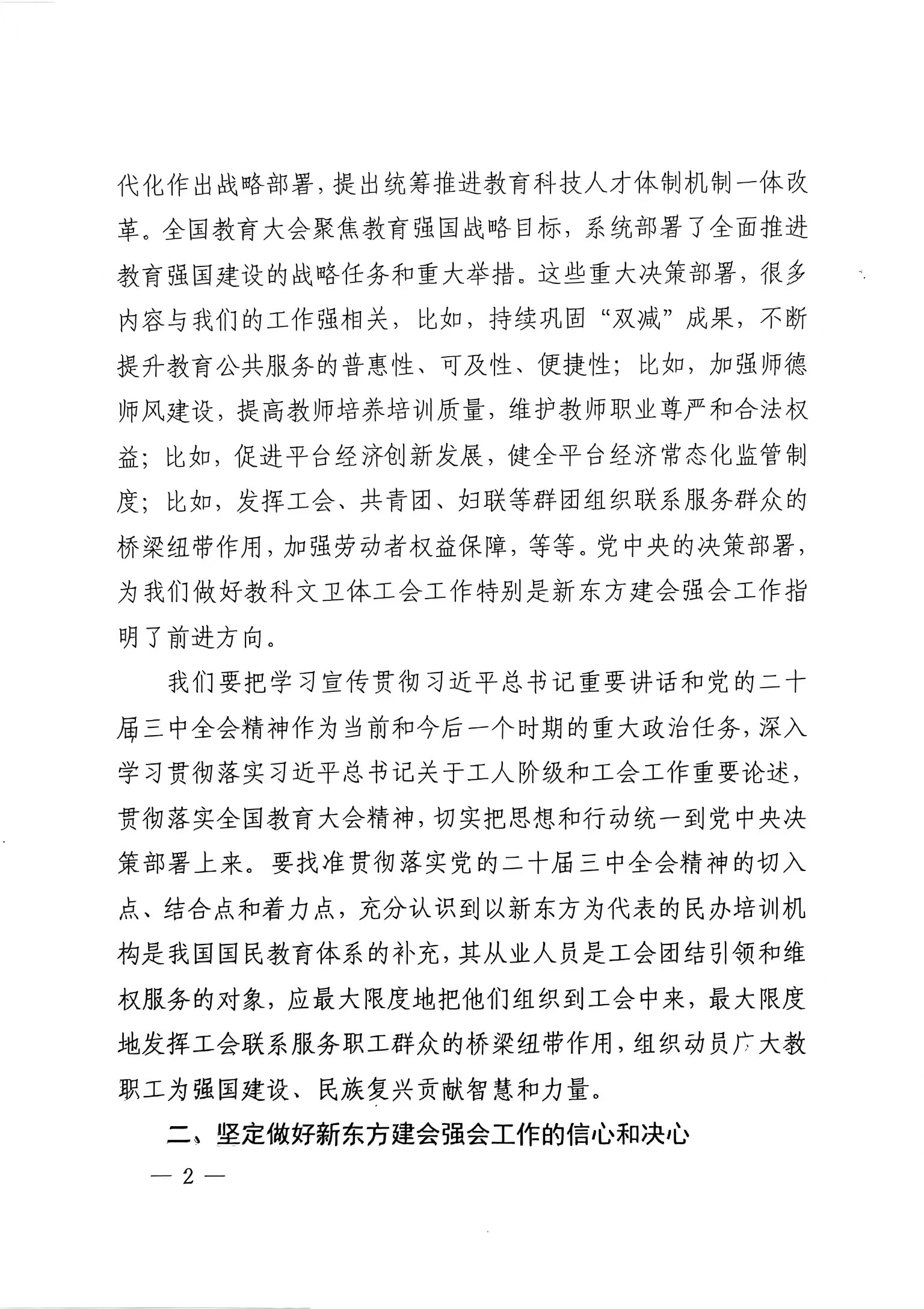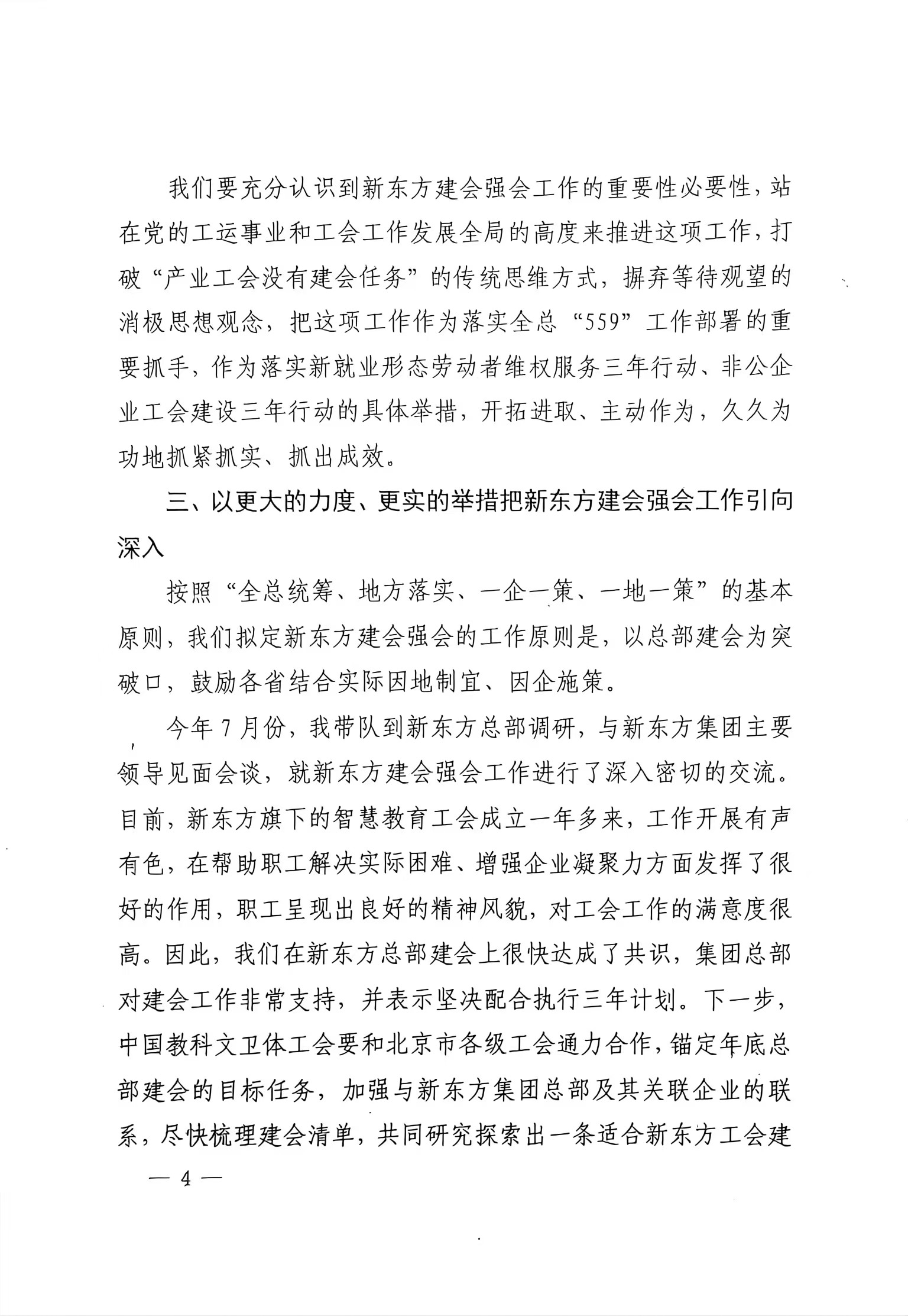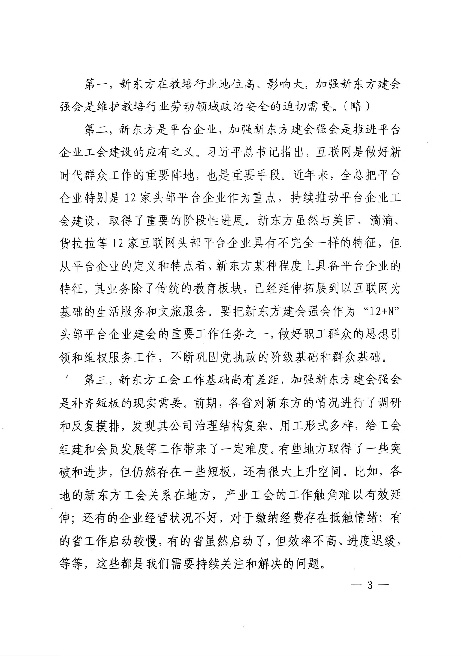 蔡安辉同志在新东方公司(教培领域)建会强会工作推进视频会议上的讲话(摘要)