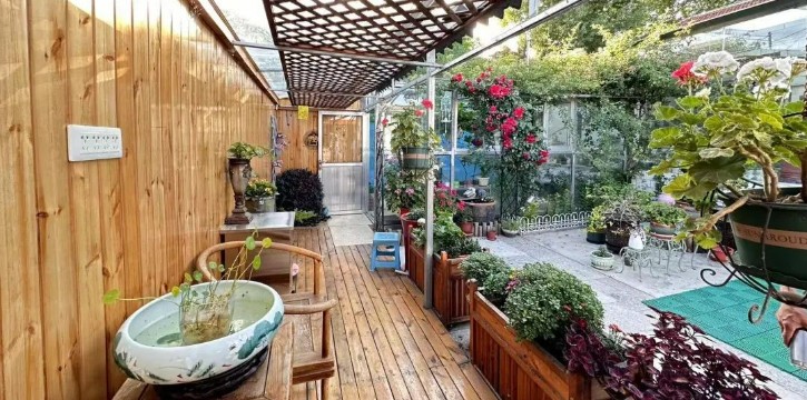 最后,当地村民带领我们前往“最美庭院”、“乡风文明户”进行参观。庭院内干净整洁,小雏菊、月季花芳香扑鼻,各种漂亮的盆栽植物错落有致,满眼绿意,生机盎然,体现出庭院的文化建设和环保理念,让实践队的同学们切实体会到了现代化美丽乡村翻天覆地的变化,仿佛走进了一幅淡雅优美的山水田园画中。