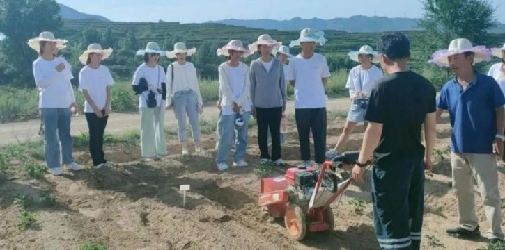 午休稍事休整过后,在当地村民的带领下,实践队的成员们共同前往专业种植大户——王吉珍家,感受农耕的辛劳和现代化农业的发展。