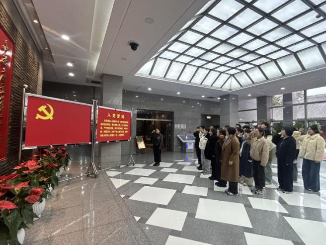 在庄严肃穆的纪念馆展厅内,面对鲜红的中国共产党党旗,全体党员紧握右拳,重温入党誓词。铿锵有力的誓言回荡在展厅中,不仅重温了入党时的初心与使命,更坚定了为教育事业和国家发展矢志奋斗的信念。