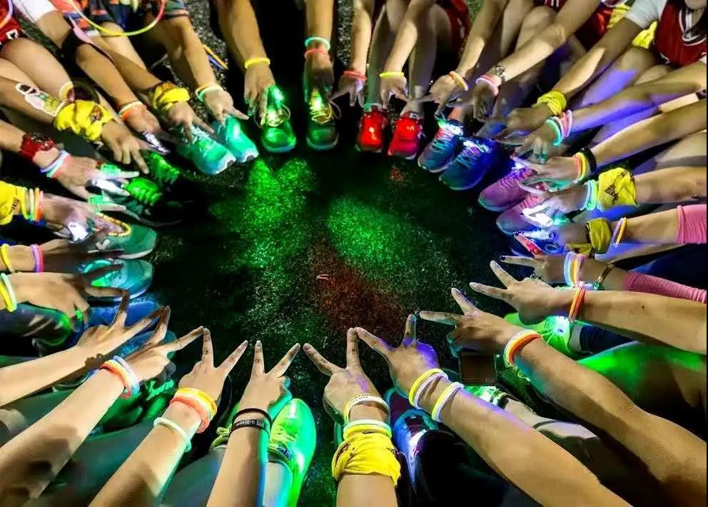 荧光夜跑,被称为"地球上最闪亮的5公里赛跑"。荧光夜跑是参与者利用荧光装备随性装扮,与其他参与者盛装出席,进行无排名之分,无速度之争的运动,沿途欣赏赛区特制的荧光装置艺术终点享受音乐派对的快乐氛围,是一场结合荧光元素的夜跑。