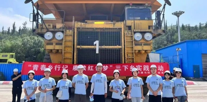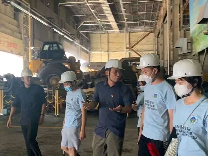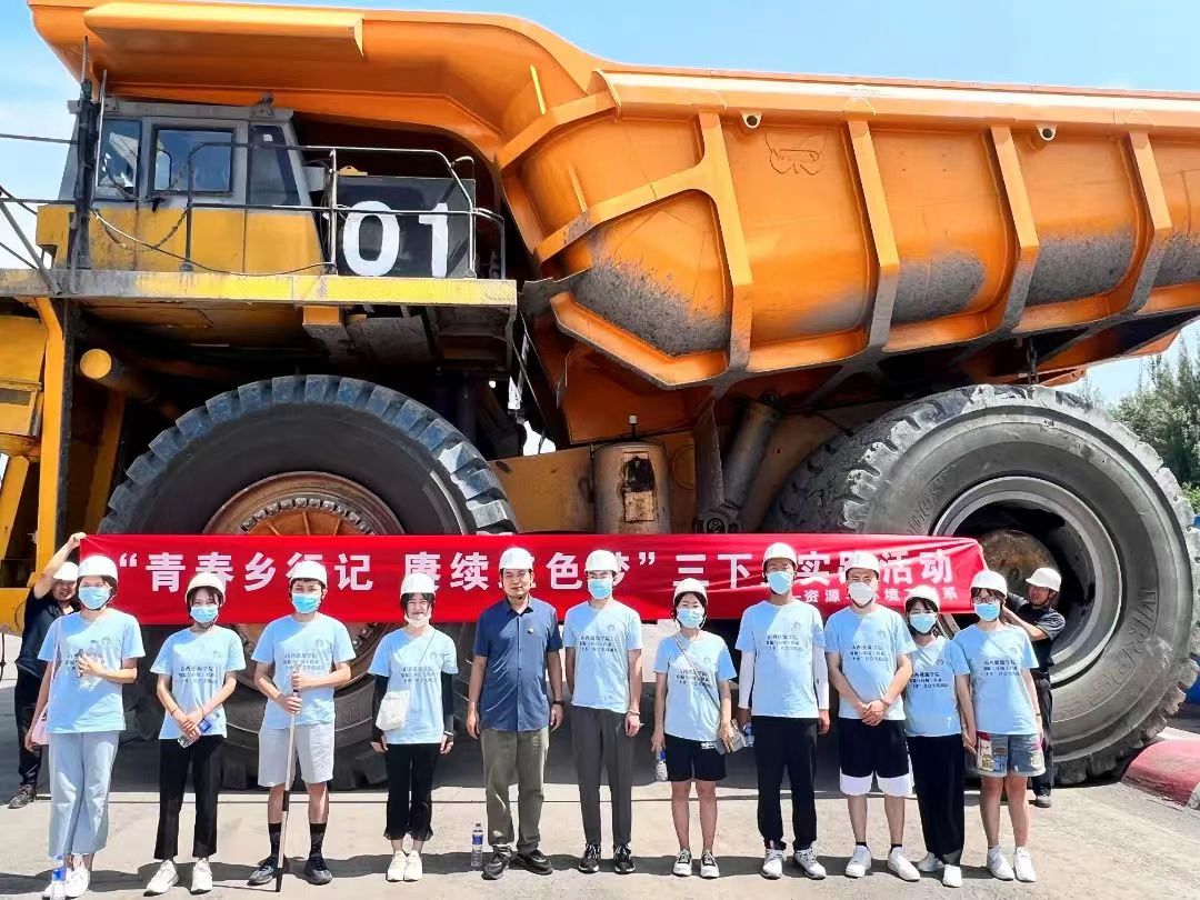 实践队一行人在车间经理的带领下,对车间进行参观学习,并围绕企业基本情况、车间仪器设备、露天煤矿开采煤层的流程等方面做了详细介绍,并与学生交流探讨煤层开采现状与目前面临的大型挖煤机油污染等环保方面问题,随后还邀请实践队成员登入730大卡车驾驶舱体验。