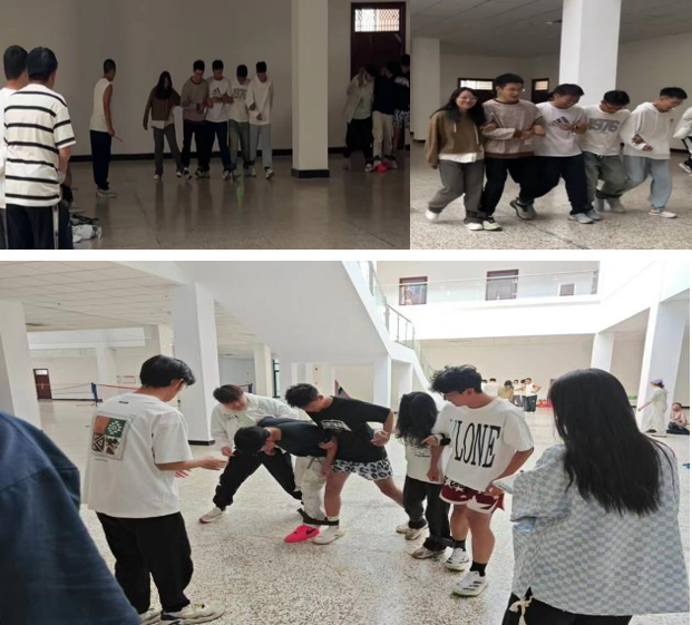 在“解开千千结”游戏中,环设2401班同学们分成两组围成圈,通过互换位置后拉上之前的同学来解开结。这个游戏不仅考验了同学们的动手能力和团队协作精神,还让他们在互相帮助中感受到了班级的温暖。