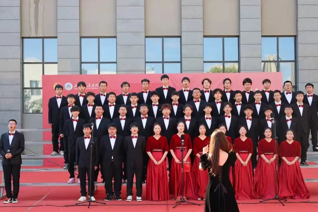 10月22日,产研学实践中心楼前,学校党委副书记桑楠出席活动,各系部领导、分团委书记以及来自各系部的十支合唱队伍、500余名师生齐聚一堂,共同用激昂的歌声表达对祖国的深深热爱和美好祝福。我系合唱团以饱满的热情、嘹亮动人的歌声、丰富的表现形式演绎了《保卫黄河》,歌声激昂澎湃,现场掌声雷动,气氛热烈。我系合唱团用歌声唱出对党和祖国的无限热爱,为全校师生带来了一场视听盛宴,充分展示了山能青年积极向上、团结拼搏的精神风貌和爱党爱国爱校情怀。