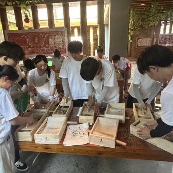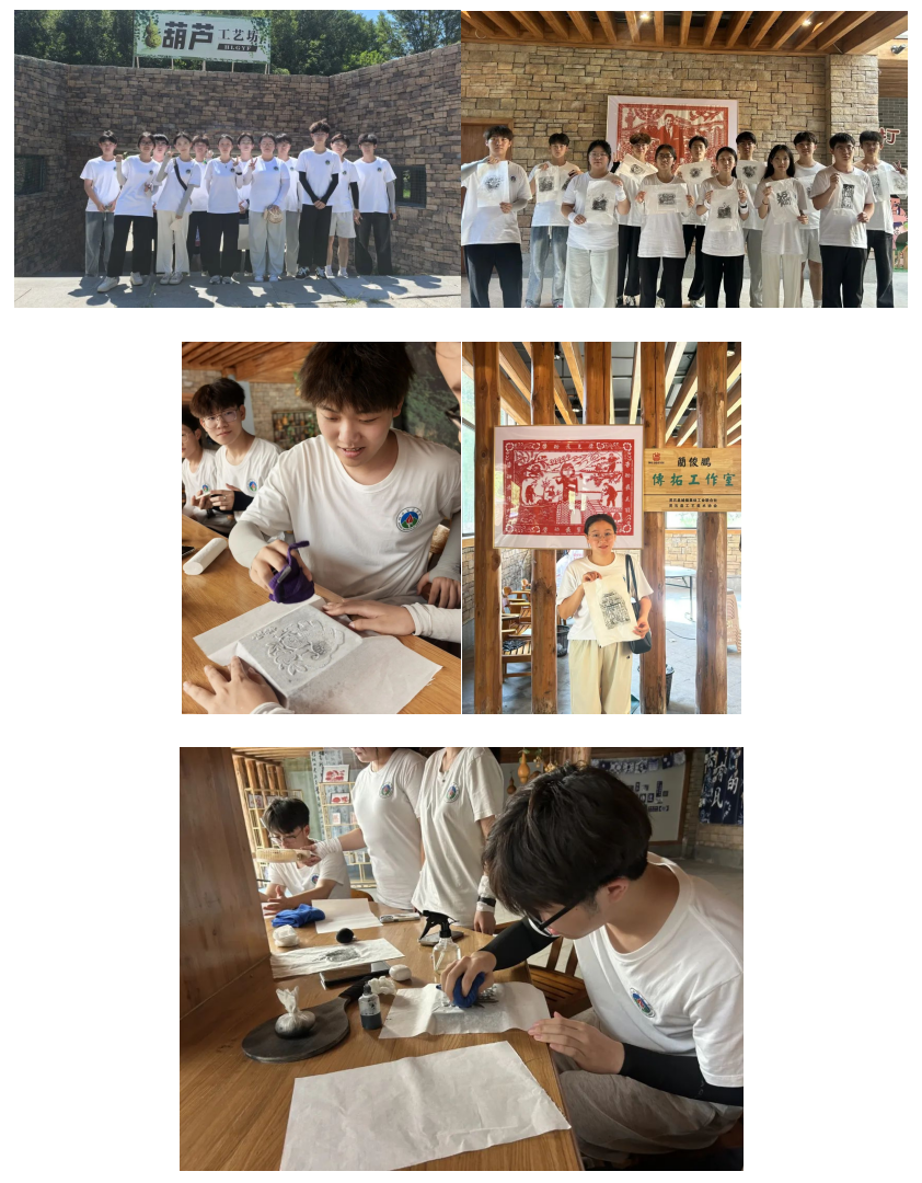 下午,同学们前往蔺俊鹏传拓工作室,开展非物质文化遗产传承实践活动。在非遗传承人的专业指导下,同学们认真聆听关于拓印技艺历史沿革与制作流程讲解。随后,大家迫不及待动手操作起来,细致完成石碑表面清洁、墨汁均匀涂布、宣纸精准覆盖及捶拓等工序。