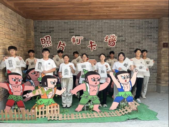 一张张古朴的拓片在同学们手中渐次成型,斑驳的墨痕里,既有魏晋碑刻的雄浑筋骨,也藏着唐代造像的细腻线条。当宣纸缓缓揭起的瞬间,欢呼声此起彼伏——有人惊喜于拓片完整复刻了千年文字的棱角,有人小心翼翼抚平边缘褶皱,更有同学用手机记录下这份“穿越时空的相遇”。 也有的同学问专业讲解人,是否有机会见到非遗传承人蔺俊鹏,想通过面对面的对话,进一步了解他与非遗的故事。很快工作室的墙面上就挂满了同学们的劳动成果,这些带着年轻温度的拓片,既是同学们实践的勋章,也成为非遗技艺焕发新生的生动注脚。