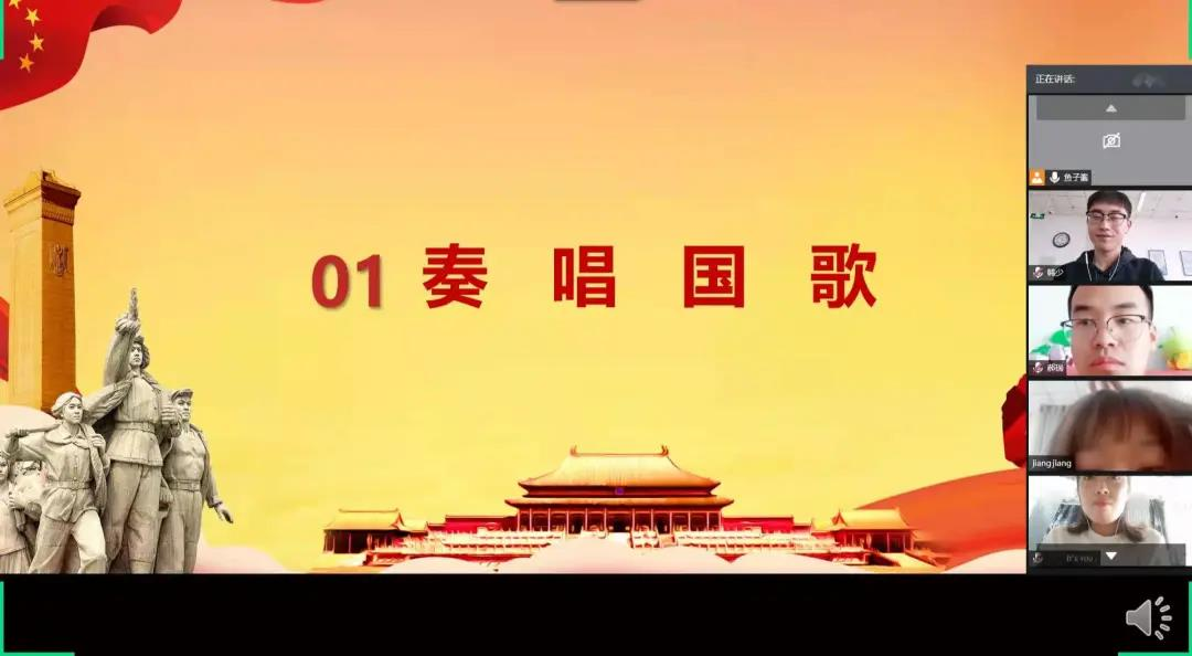 活动开始第一项,全体党员肃立致敬,奏唱国歌,强化学生爱国意识,培养学生爱国主义情操。