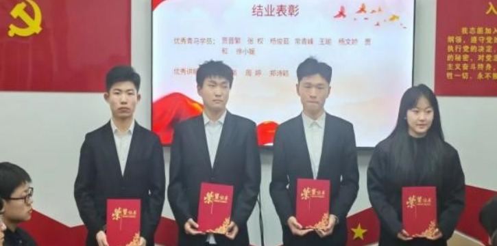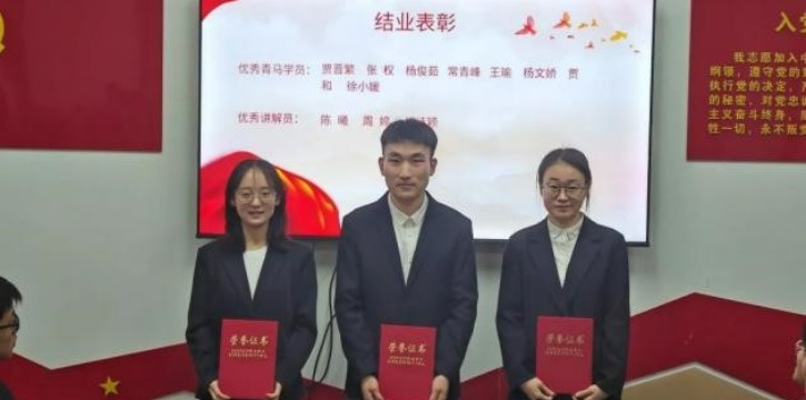 在本次青马工程培训班的结业仪式上,对表现杰出的青马学员及优秀讲解员进行了表彰。荣获“优秀青马学员”称号的学员有:贾晋繁、张权、杨俊茹、常青峰、王瑜、杨文娇、贾和、徐小媛。荣获“优秀讲解员”称号的学员有:陈曦、周婷、郑诗颖。希望受表彰的学员能够珍惜荣誉,发挥先锋模范作用,引领更多同学深入学习马克思主义,为我国各项事业的发展贡献自己的力量。