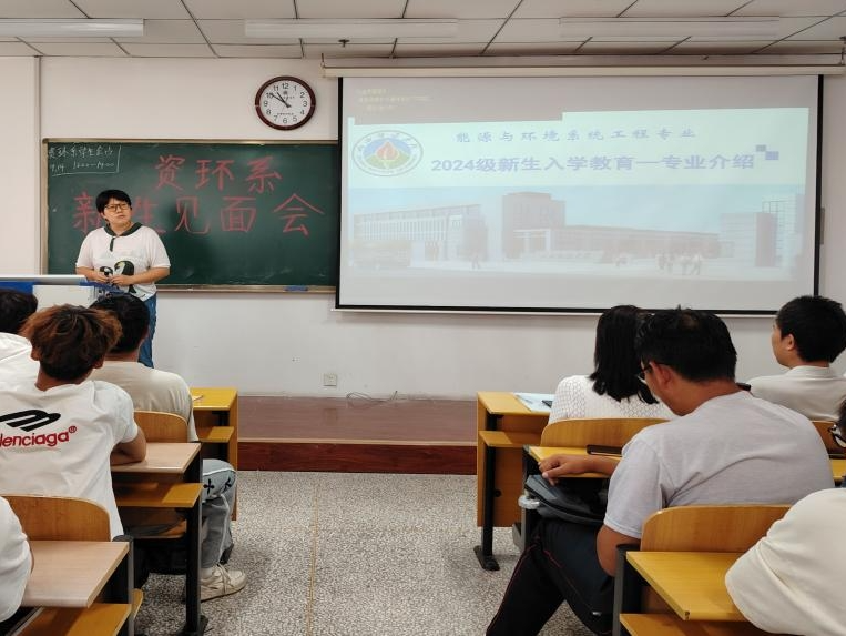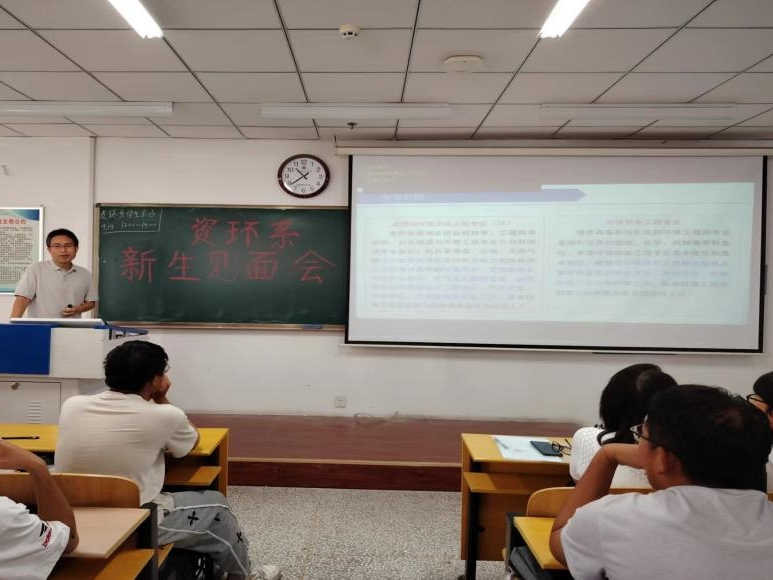 靳宁副主任为新生介绍了我系能源与环境系统工程专业和环保设备工程专业的专业特色、专业背景、人才培养目标及方向、课程体系等。让学生初步了解本专业学习内容、就业方向、就业岗位具有的素质和能力等,为今后的专业学习打下良好的基础。