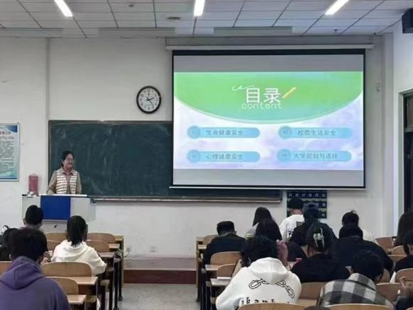 田晓晖老师、贺慧老师开展关于安全、大学规划、评优选先等方面的教育。田老师告诫学生要严守安全底线,提高风险防范意识和能力,同时分享了就业的多种渠道,引导学生做好规划,强化学习动力。贺老师分享了关于综测,评优选先等相关内容,鼓励大家在大学期间积极参与各类活动,努力自己综合素质。