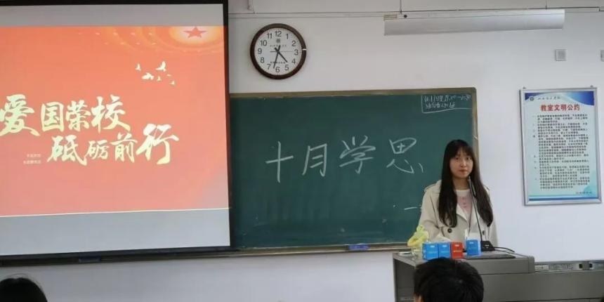 为热烈庆祝中华人民共和国成立75周年,深入学习贯彻习近平新时代中国特色社会主义思想,弘扬爱国主义精神,激发同学们的爱国热情,增强民族自豪感和使命感,环设2301班于20241017日开展了“爱国荣校,砥砺前行”主题学思活动。