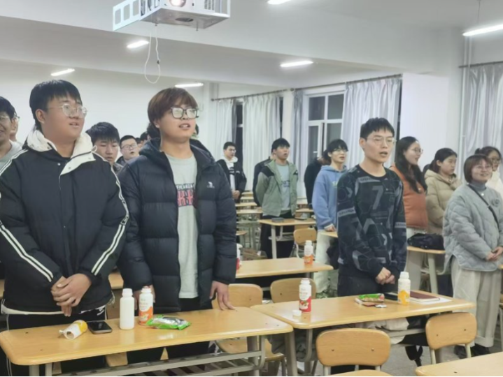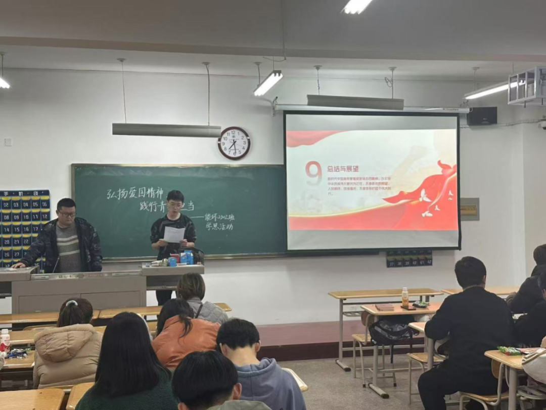 在热烈庆祝中华人民共和国成立75周年之际,为深入学习贯彻习近平新时代中国特色社会主义思想,大力弘扬爱国主义精神,充分激发同学们的爱国热情,切实增强民族自豪感与使命感,2024年11月20日,能环2302班精心组织开展了以“弘扬爱国精神,践行青年担当”为主题的学思活动,本次班会由辅导员赵小舟老师主持。