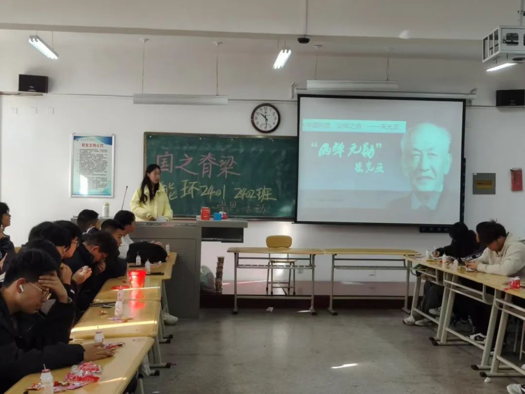 在时代的浪潮中,总有一群人如巍峨高山,挺起了国家的脊梁,他们是民族的英雄,是我们前行路上的璀璨星辰。2024年11月28日,在辅导员贺慧老师的带领下能环2401-2402班共同举办了一场意义非凡的学思活动:“国之脊梁——向英雄致敬”!通过本次活动,同学们深入探寻那些英雄人物的伟大事迹,深刻领悟科学家们的崇高精神。向榜样学习,向英雄致敬!