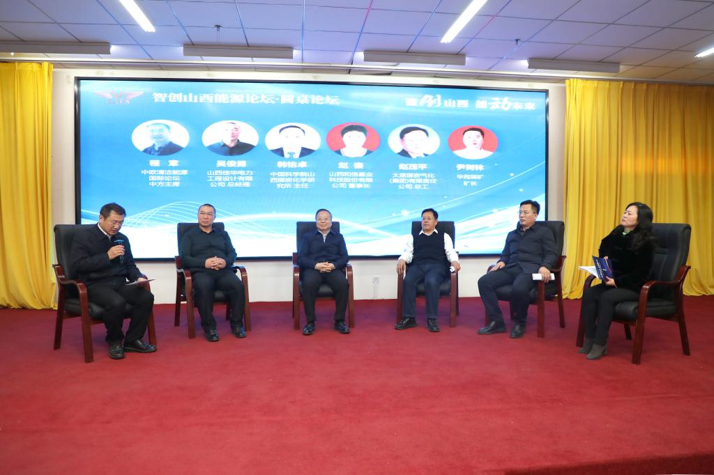 会议第二阶段为智创山西能源论坛。新当选的能源分会会长冯国瑞教授以《残采区关键域充填储碳空间重构的基础研究》为主题进行了专题报告,山西省能源研究会会长程章、中科院煤化所研究员韩怡卓、山西佳华电力工程设计有限公司总经理吴俊勇、山西和信基业科技股份有限公司董事长赵秦、太原煤气化集团总工赵茂平、华苑煤矿矿长尹树林等六位嘉宾以《能源革命 山西有为》为主题举行了圆桌论坛。