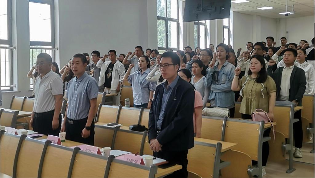 教师发展中心王畅老师带领全体新入职教师进行了庄严的宣誓仪式。新入职教师们以铿锵有力的誓言表达了对教育事业的忠诚和热爱,彰显了作为一名人民教师的光荣感、责任感和使命感。