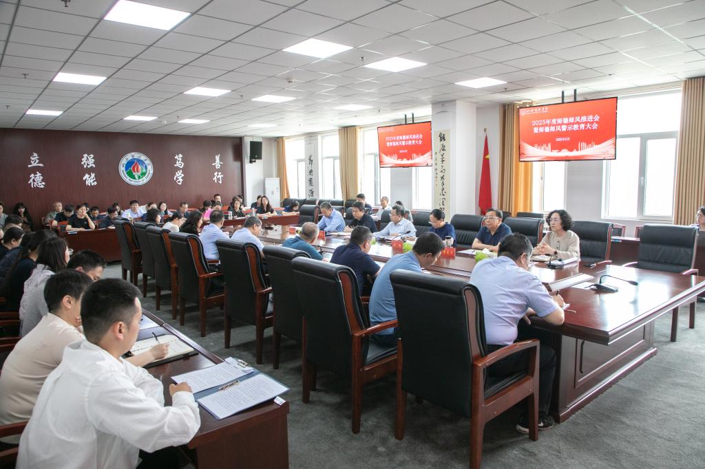 为深入贯彻落实全省教育大会精神,教育引导全校教师筑牢思想防线,严守师德底线,5月26日,beat365召开2025年度师德师风推进会暨师德师风警示教育大会。会议由党委副书记、院长桑楠主持。