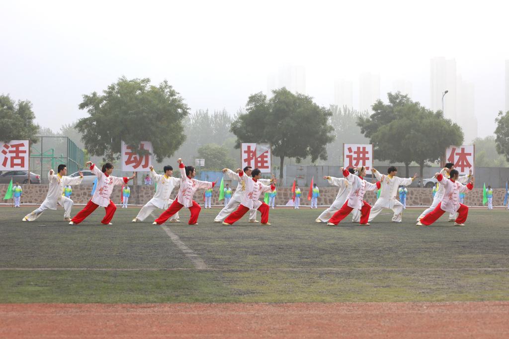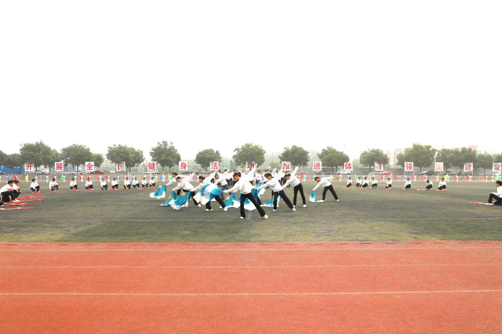 开幕式上,各系部进行了精彩的团体操表演,轻快的旋律,不断变换的队形,伴随着纸扇开合相间,彩带上下飞舞,宛如江南烟雨里的荷叶舒展,好似猎猎旌旗催人奋进,校武术队的同学们也为大家呈现了精彩的武术器械和太极拳表演。