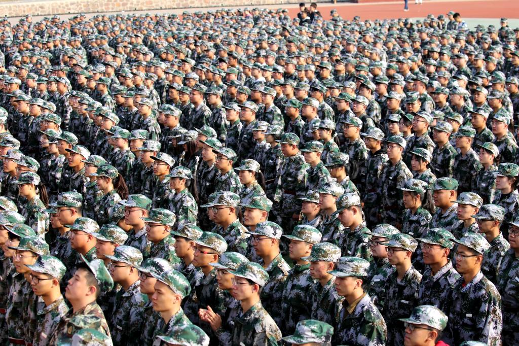 伴随着雄壮的《中国人民解放军军歌》,2020级2400余名新生在教官的带领下,开始执行为期10天的军训任务。